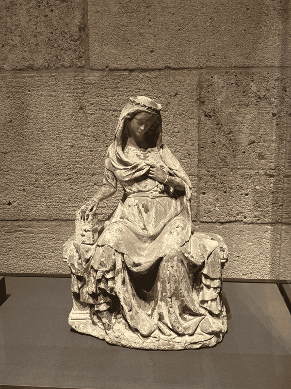 This was my absolute favorite, though. This is a sculpture of Jesus and John, the disciple he loved. They are portrayed through their pose as husband and wife. Jesus is the husband, John is the wife. This sculpture once stood in a monastery. I don't think it ever says in the Bible that John left his wife so that he could follow Jesus, but at the very least these monks believed this was the case, and they saw John and his love for Jesus, to the point of foresaking his own wife in favor of Him, as deeply aspirational. Looking at this sculpture made me emotional beyond belief. It made me feel so peaceful to look at it, I just loved the content expressions on John's and Jesus' faces, and how lovingly they were carved in this gay ass pose. Idk it's just really powerful to see how happy Jesus looks to be gay married. He's just like me for real.