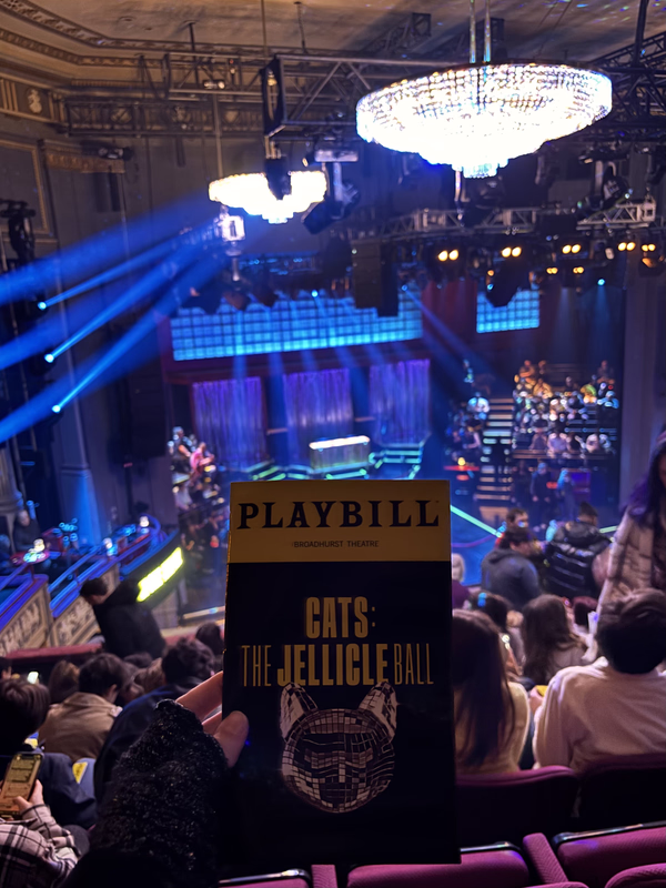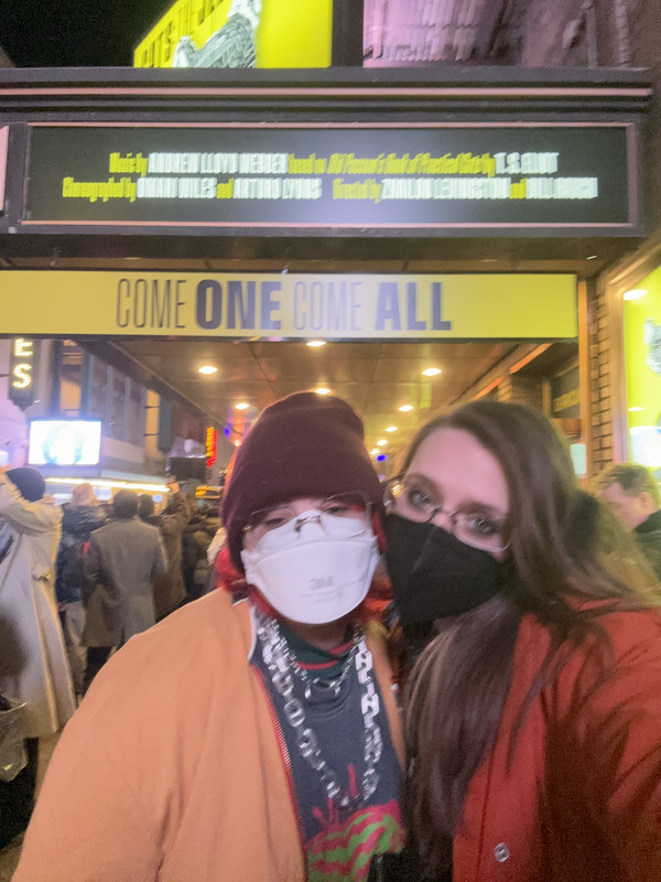 We saw Cats: The Jellicle Ball and it was such a fun time. I was completely starstuck that Junior Labeija played Gus the Theater Cat!!! And I got super emotional while they were singing his song. Also Andre De Shields played Old Deuteronomy. With the two of them especially it was really clear to see how much respect and love and gratitude everyone in that room felt towards the older members of our community. That really moved me. I feel like every queer person can relate to that deep and profound respect almost to the point of worship that we feel for old gay and trans people. It's so different from how the rest of our culture tends to treat older folks and it's something I think only other queer people will understand. But I really felt it watching Cats. Overall it was just such a joyful and celebratory show and I would definitely recommend people go see it. As long as you have at least a surface level understanding of both ballroom culture and Cats the Musical. Otherwise I think you might be pretty lost. Also it was opening night and they gave us big fans which was pretty cool. There was a guy standing outside the theater asking every single one of us as we walked in, "Does anyone have an extra ticket?" which was really and truly killing me because like... it is OPENING NIGHT. No, no one has an extra ticket to give you.
