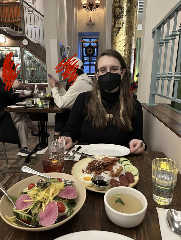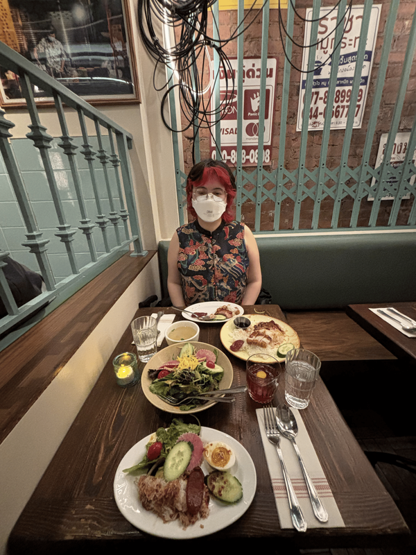 Okay so believe it or not all that stuff was from the day that I arrived. On the second day I know we did stuff in the morning/afternoon but I can't really remember what we did. I do remember that in the evening we went to Pranakhon, which is OUR SPOT. We went for our anniversary I want to say two years ago? I think last year for our anniversary we cooked heart shaped raviolli from Trader Joe's and made garlic bread, which was also delicious tbh. But yeah, we've been to Pranakhon twice now and gotten the house salad and the Khao Moo Dang, and I always get some sort of cocktail which are legitimately delicious at this place. And of course finished with halo halo ice cream which has lychee and sweet corn and butterfly pea rice and coconut ice cream and I think Harvey and I truly spend all year thinking about it until we can go back and eat it again HAHA. If you're in NYC and have like $100 laying around and want somewhere delicious to go I would definitely recommend yummy delicious Pranakhon.