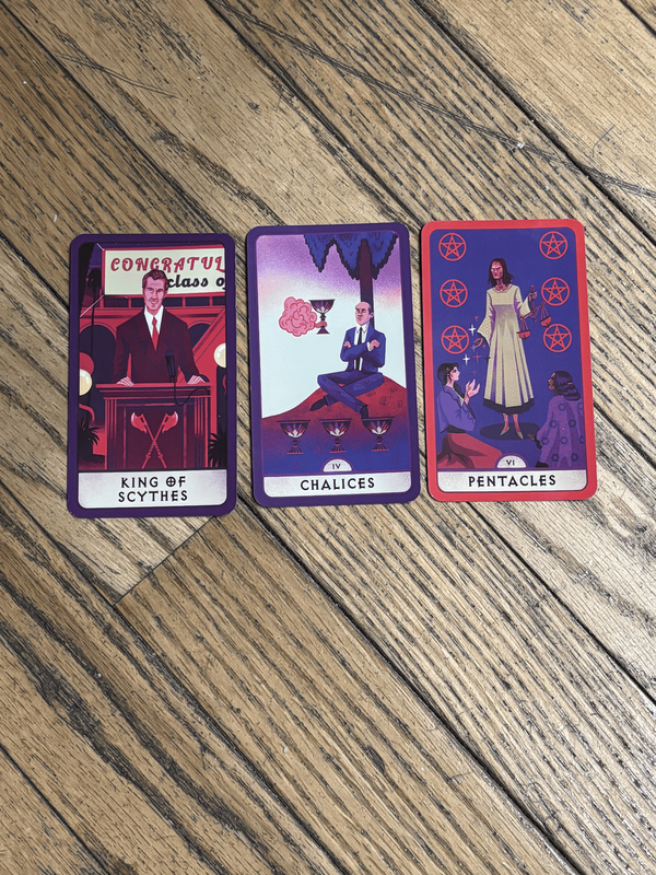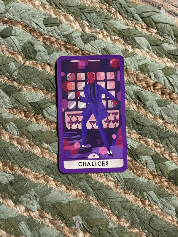 Did some tarot readings for us. Pictured on the left is Harvey's, pictured on the right is the single card I pulled in answer to the question "Should I smoke weed tonight?" How to interpret the Nine of Cups in response to a question like that?? You be the judge. LMAO.