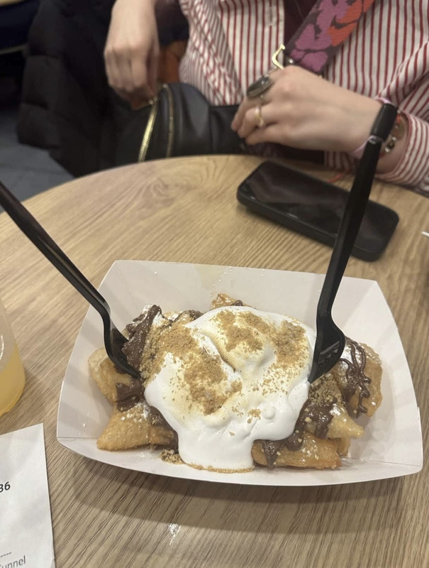 Just looked at these pictures and could have cried because I wish I was eating this again. Nishaan was, like, the greatest place we went all week. I think it was Harvey's favorite too. This Pakistani chopped cheese changed my life. We also had mango refreshers and then for dessert we tried the paratha funnel cake. Get out of my faceeeeeeee. It was chilly and gloomy and a little bit rainy and there was truly nothing better I could have eaten than this warm spicy big greedy sandwich. I'm going to get too emotional if I keep talking about it so I'll cut myself off here. If you are in NYC PLEASE go eat this sandwich you need this in your life.