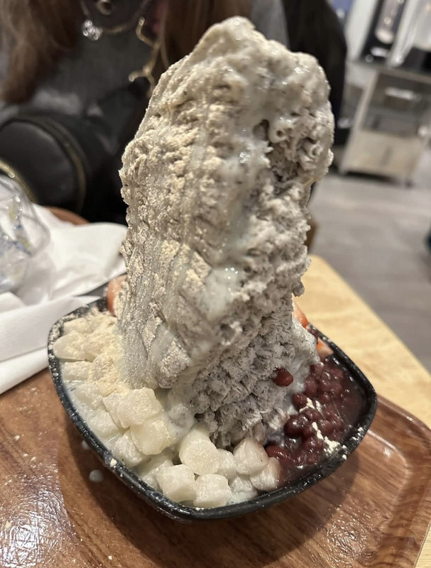 When I told you Harvey and I were greedy I wasn't kidding, okay??? After the Lion King we went to Grace Street Coffee & Desserts and got this absolute tower of black sesame shaved ice. We also got a Dubai chocolate cookie mochi thing that we brought home and ate later. Our greed honestly sickens me.
