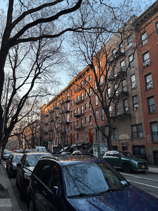 The first picture I took in NYC. I took a morning walk at around 7:30 AM to go get bagels and coffee and I thought the neighborhood looked so pretty as the sun was coming up.
